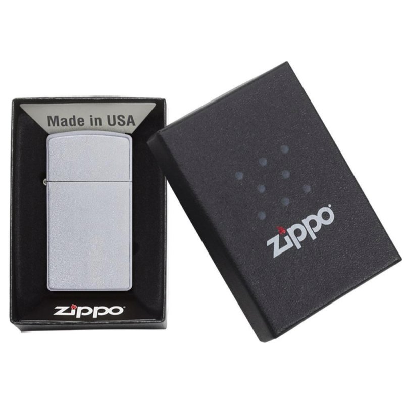 De Zippo Slim aansteker is met een afmeting van 56 x 30 x 10 mm iets kleiner dan een reguliere zippo. Deze Zippo Satin Finish Slim is een zilveren aansteker met een satijn look afwerking aan alle kanten. Deze aansteker is al jarenlang te vinden in het assortiment van Zippo en is ideaal om als kado te geven.